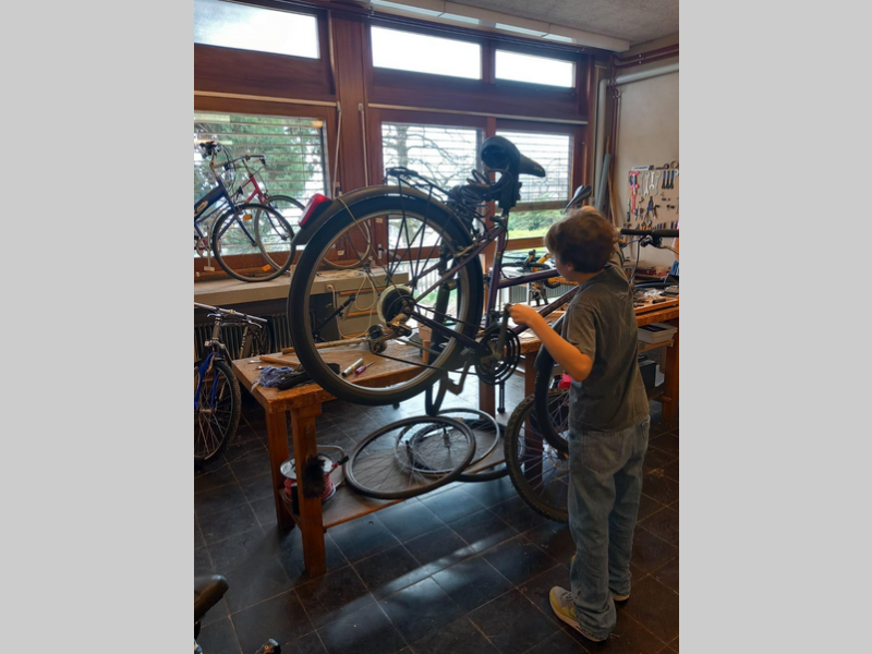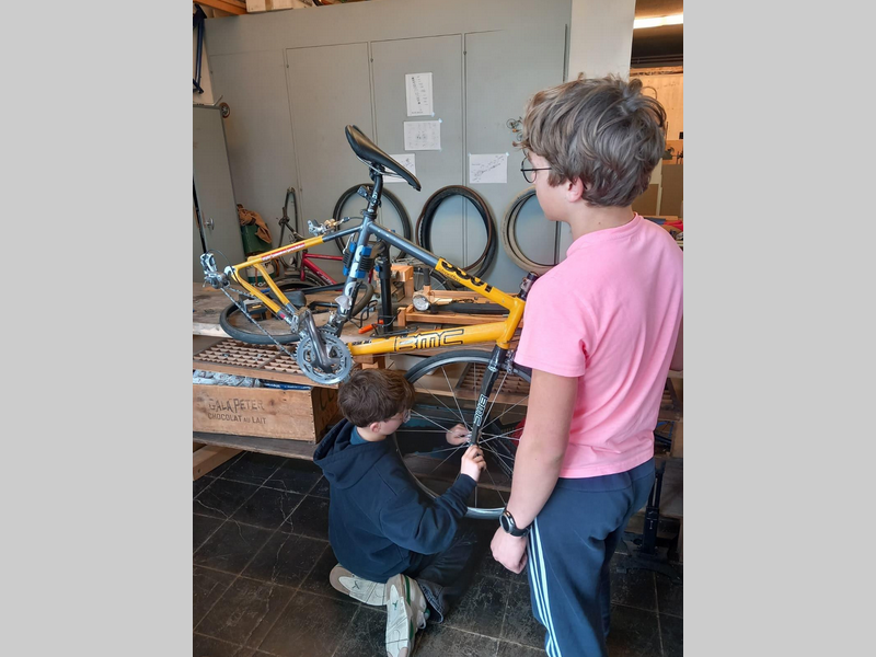Thématique en lien avec la durabilité : réparabilité des objets / recyclage direct / mise en valeur du vélo / “respect” des objets / création d’une flottille de vélos destinés au don pour les élèves en étant démunis, pour le prêt de vélos pour le week-end ou les vacances, pour des sorties scolaires à vélo